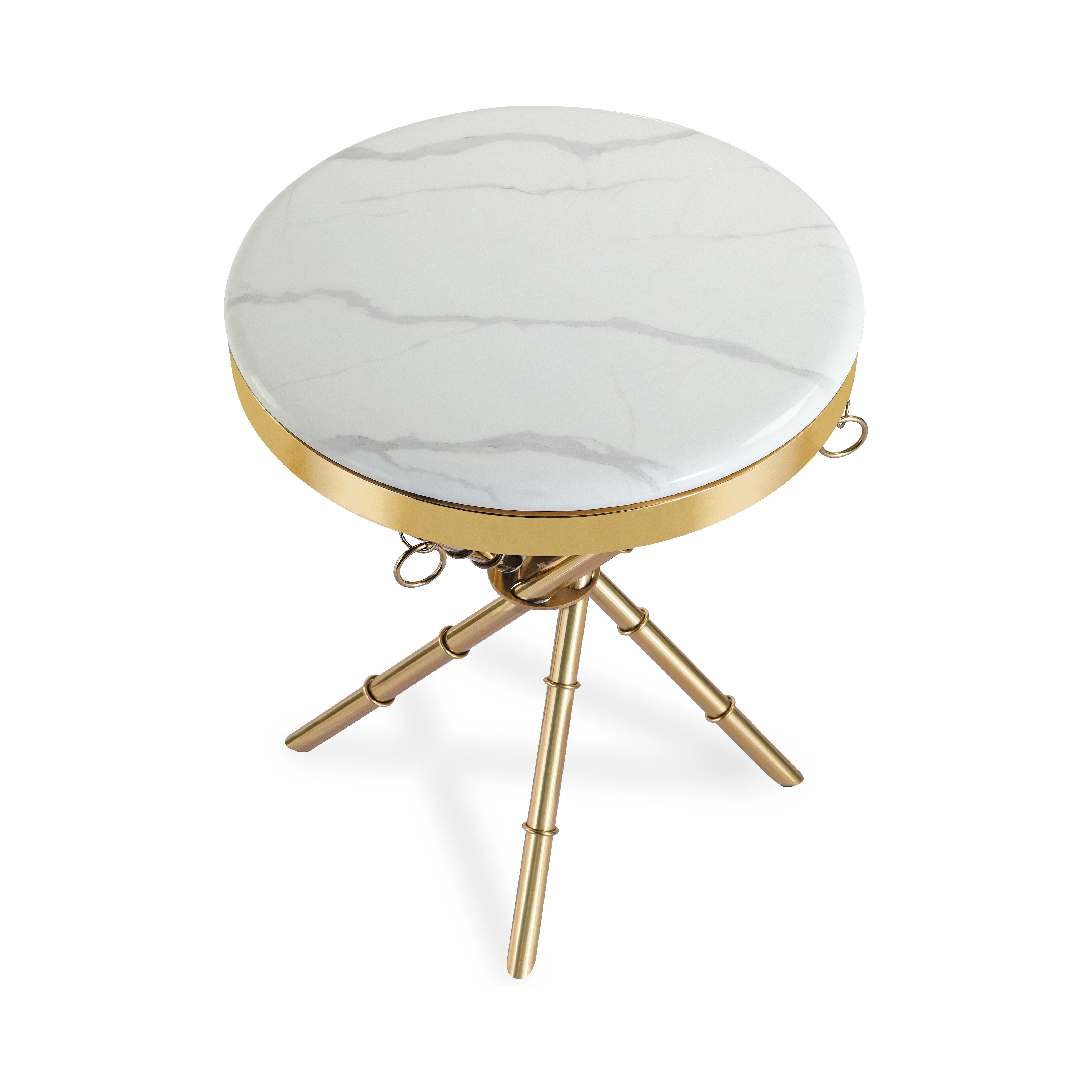 The BAMBOO Faux Marble Side Table seamlessly blends the elegance of faux marble with the resilience of bamboo inspirations. Every detail, from its gold accents to the exquisite marble top, radiates sophistication for any living space.