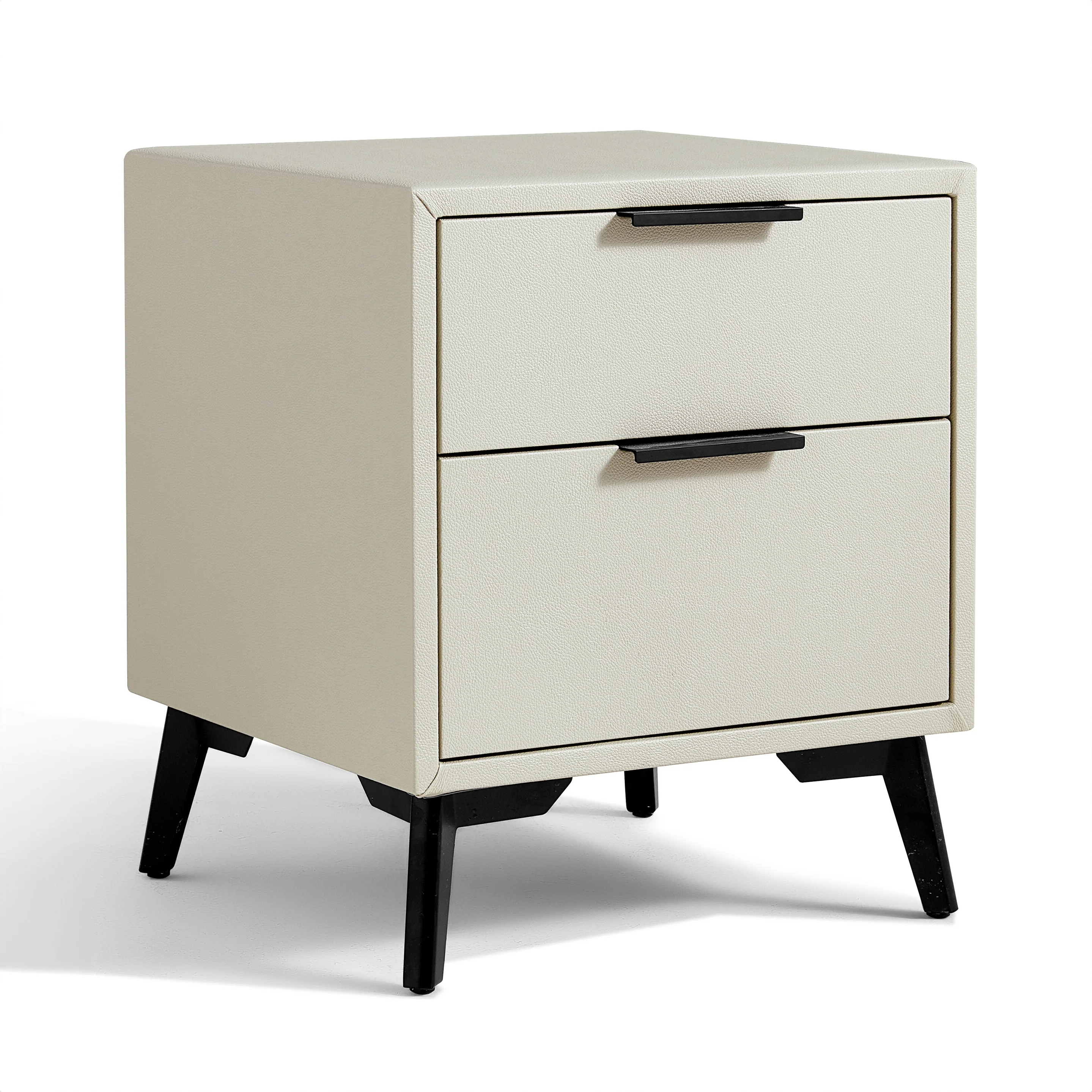 Elevate your space with our chic, dual-drawer nightstand, a perfect blend of functionality and modern aesthetics. Crafted with durable melamine, it offers a luxurious feel with easy maintenance. The elevated metal legs not only add a sleek touch but also simplify cleaning underneath, ensuring your space remains pristine with minimal effort.