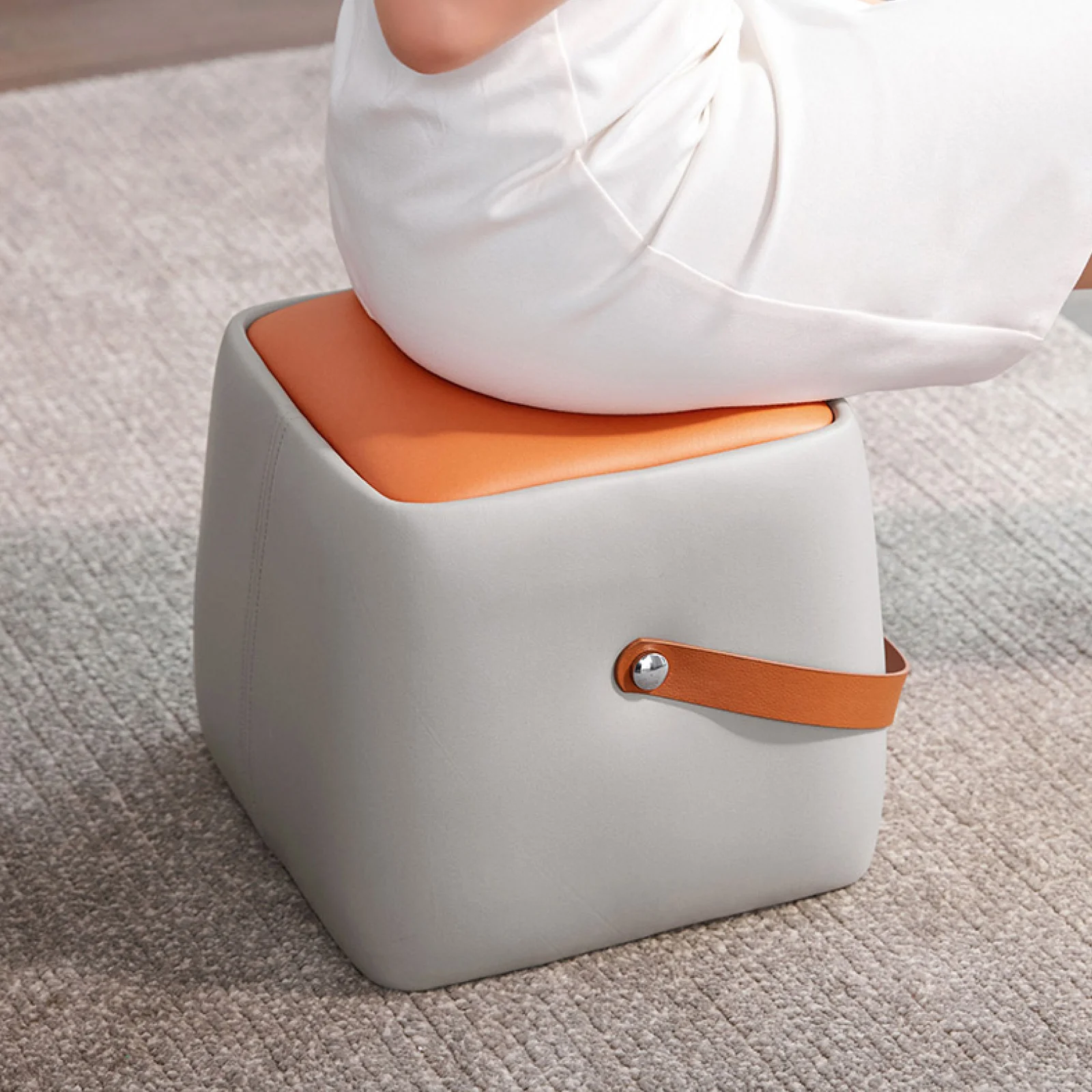 The Stool features a convenient handle, allowing for easy portability and transportation. Its soft upholstery ensures a cozy and comfortable seating experience. Experience the convenience and comfort of this multipurpose chair, ideal for relaxing, lounging, or as extra seating in any room.