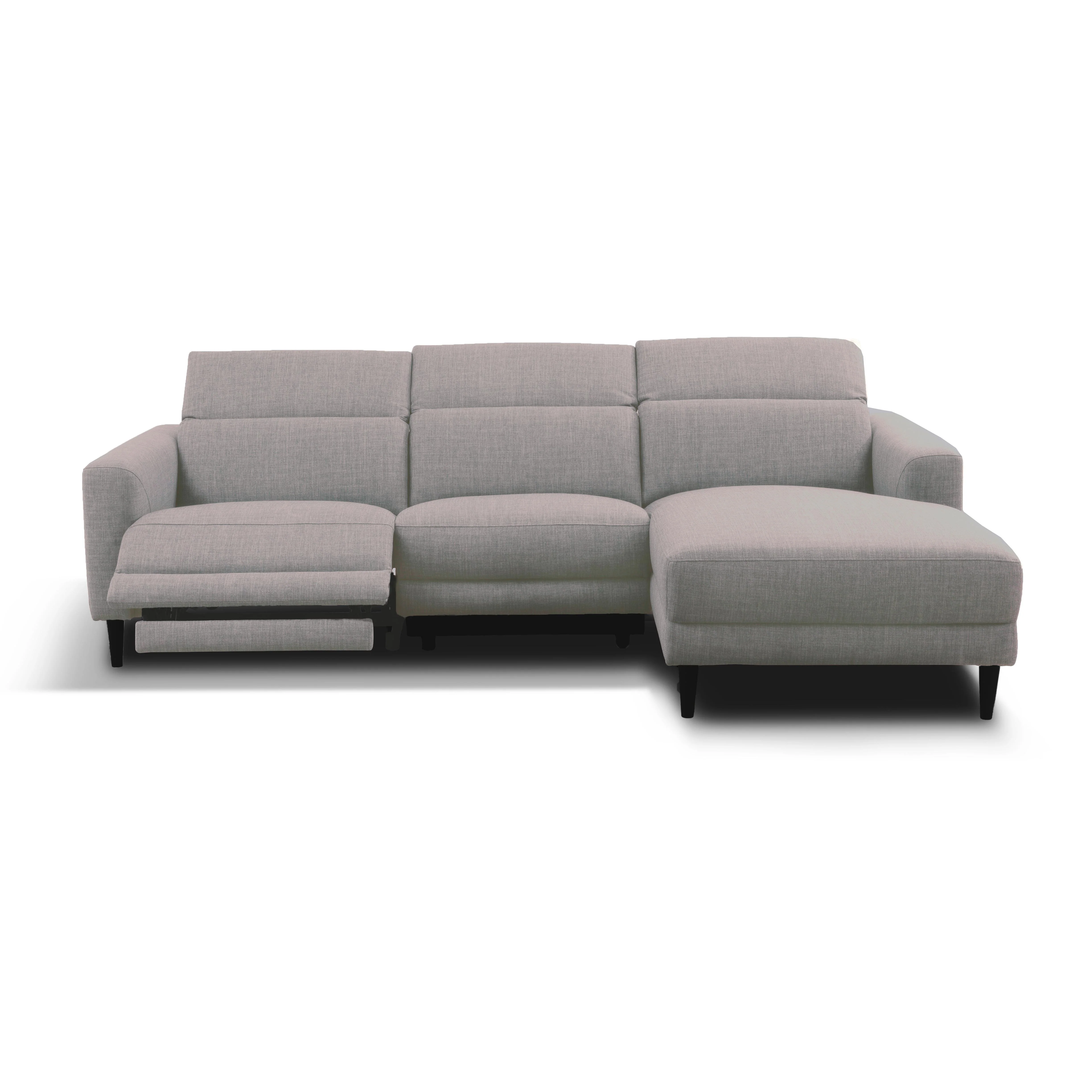 Enveloped in a serene tapestry of slate-hued upholstery, this fabric sectional merges the art of subtlety with the comfort of ingenuity. The adjustable headboard and meticulous tailoring are harmoniously integrated, crafting a centerpiece that stands as a paragon of contemporary furnishing.